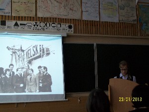 • Дружинина Анна, ученица 9б класса, (научный руководитель Попова Антонина Павловна)  провела исследование и познакомила присутствующих с историей парохода «Вельск», с воспоминаниями очевидцев о капитане судна Стрежневе Юрии Ивановиче, нашем земляке, с интересными фактами дружбы и сотрудничества, которые тесно  связывали экипаж корабля с учащимися нашей школы и жителями нашего родного города. Тема исследовательской работы «Пароход Вельск: дружба экипажа с учащимися школы №1 и жителями города Вельска».